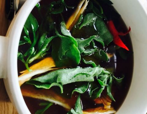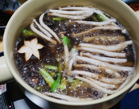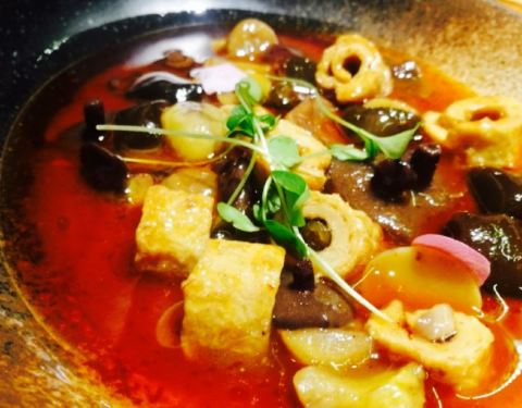 ...菌五行养生锅】(主菜)汤底很鲜,煮素菜安逸,最经典的是那个有菌子的蘸酱,太好吃了,买了一瓶回家