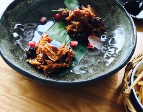 来过这里才发觉,原来素食也可以做的这么美。如此入味。地址不算好找,在一座写字楼里,饭点的时候会在写字楼大厅安排服务员指引。走进餐厅,立刻被装修和装饰细节所吸引,不禁感叹这是一家用心打造的食堂。总体...来过这里才发觉,原来素食也可以做的这么美。如此入味。地址不算好找,在一座写字楼里,饭点的时候会在写字楼大厅安排服务员指引。走进餐厅,立刻被装修和装饰细节所吸引,不禁感叹这是一家用心打造的食堂。总体环境很过瘾,晚上可以用餐,下午还适合喝茶。上菜,每道菜的摆盘都那么精美,再加上服务员的细心讲解,好感倍增。试菜,味道果真对得起每道菜的颜值。「寒江雪」应该是腐竹做的,处理的非常可口,口感偏硬,但尝起来十分美味。「菡萏花开」仙气十足的名字,超完美的颜值。就味道而言,偏淡,但不影响对它的热爱。「上素干锅猪肚菌」服务员介绍猪肚菌是用黄油煎的,怪不得味道那么好。推荐。「汤锅配菜」配菜品质太有良心。搭配的蔬菜都是很少见的田七苗,冰草。「提奥提华」好像是墨西哥风味,味道还不错。「实在不明白怎么读」这个饭太棒了,好想再来一碗。虽然菜量比较少,但因为种类多,还是可以吃的很好,而且有些菜品是可以免费添加的哦。「幻觉」这道菜个人和朋友不是很开心,豆腐做成的肉丝状口感偏软,吃起来怪怪的,总体来说过于辛辣,而不是香辣。「慢烤脆柿」这道菜品过于简单了,对于整个晚餐来说有一种草草结束的样子。下次更新菜单还会来。