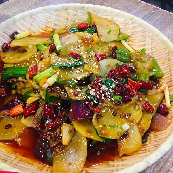 落座5分钟菜就上齐了,后厨的速度也是惊人!凉面中规中矩。蹄花炖得非常烂,和雪豆一样,非常烂。小缺点是可能蹄花汤里兑水次数太多,所以汤的味道比较寡淡、油润度不够,不是很香浓。毕竟这是招牌,还是应该再认真一点。回锅肉很大一盘,辣椒和洋葱多,味道还行,有点柴。干锅土豆有点厚,虽然佐料很够,还略嫌不够入味。素炒小白菜倒是很好吃。我感觉后厨为了赶时间,短时间一个大锅炒菜这么多桌,可能降低了味道的品质。