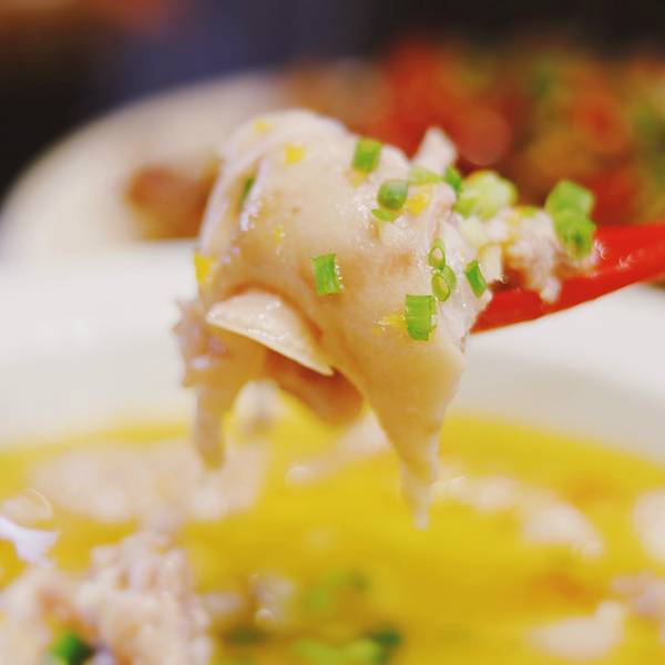 鲫鱼蒸熟冷却后,配上经典小米辣/香菜和醋,鱼肉新鲜,肉质细腻,酸酸辣辣口感清爽。他们家除了上面我点的这些菜,还有很多经典的川菜,比如麻婆豆腐/宫保鸡丁/麻辣小龙虾/干锅基围虾/伤心凉粉等等应有尽有,总之吃川菜蹄花来这里就对了,相信我,你一定会满意的!