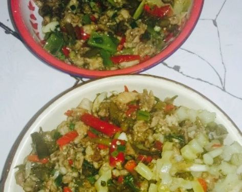 - 兔子肉事前应该码过料,煸炒之后表面有酥香的口感,也比较入味。这个决策实在太英明了