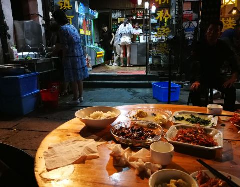 拍完夜景,一路石板路步行到这里,晚上七点半左右,最热的小小饭馆已经食材售完,移步到对面的小桥私房菜,同样人气餐馆,也就剩下露天的一张小圆桌。简单的用餐环境,丝毫不影响美食的味道。典型江南菜的风格地...