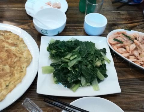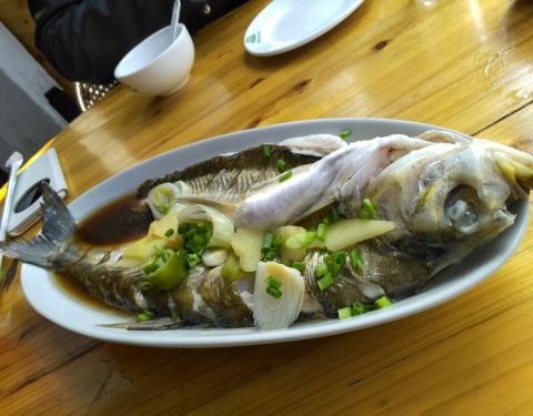 逛了一会快到中午的饭点,就开始觅食了,查看了几家老店评价靠前的,选了这家以开始没什么客人有点胆怯,但还是抱着试试看的心态,老板很热情看到我们几个人就推荐了几个招牌的菜也没让多点,觉得你们够吃了,果然很良心。推荐了清蒸白鱼,本以为是半条没想到整整上来了一条,关键是非常新鲜,肉质很嫩盐淡正好,刺也不是很多,也没什么腥味真的很不错;油爆河虾也是特色,炸得脆脆香香的,但又保留了虾肉的弹性,口感很不错;还点了连个蔬菜,都很新鲜,菜量也不少,味道也不错,价格也非常实惠,很不错推荐!