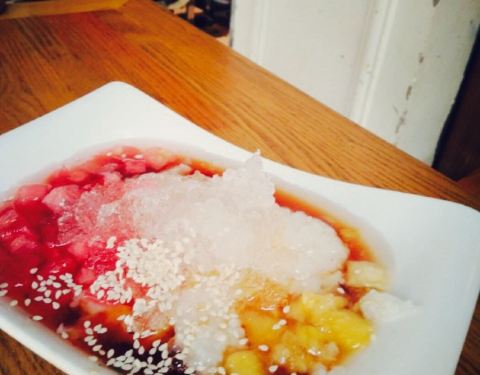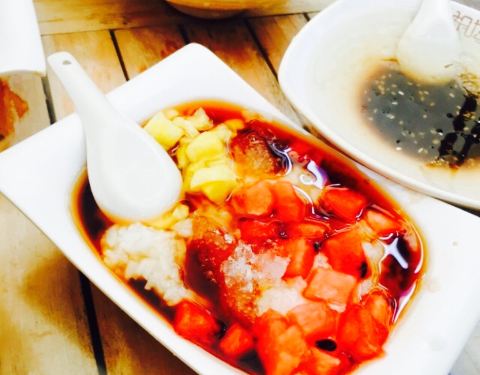 - 玫瑰凉糕和豆末汤圆是我的最爱,还有川香鸡,冰糖银耳羹,冰稀饭也鲜美(加水果的)凉米线虽然没有洪...