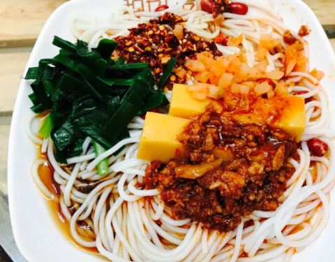 在小庙街附近。点了评论比较好的玫瑰凉糕,凉米线,川香鸡。玫瑰凉糕很入味,甜甜的黏黏的,凉米线也是特色,很入味,川香鸡量不大,鸡肉比较少,不过很香。整体挺好的,地方也很大,重点是遇见了一个奇葩的牵狗...
