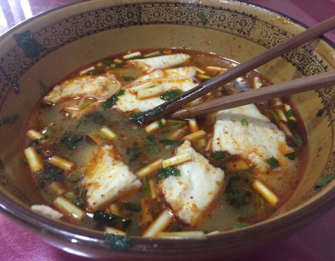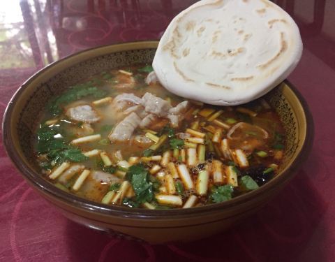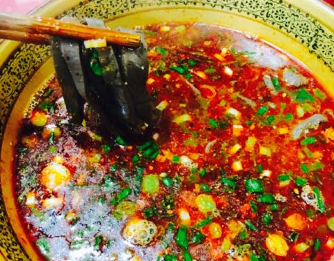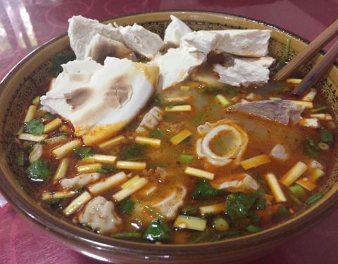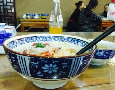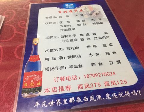 这是一家本地的老字号饭馆。虽然看起来不怎么起眼。招牌是羊血粉汤和梆梆肉。我一直心心念的羊肉粉汤在这家店完美告一段落。因为去的时候不是饭点。一大早的还没有顾客。就要了一份羊血。才15元钱。很大一份。非常给力。吃起来也没有腥味。口感灰常好。虽然看起来上面都是各种辣椒什么的。可是并不辣。汤完全可以喝滴。要是再配上一个白馍馍就更赞了。店主服务也很好。