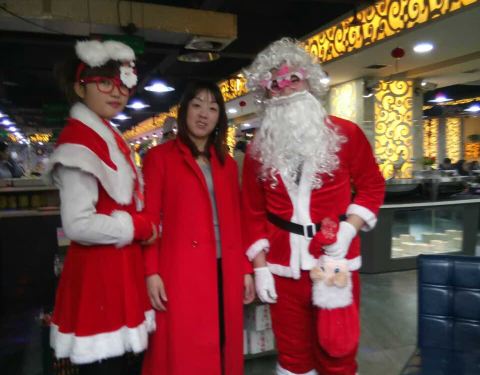 整体还是不错的,平安夜去的,送了平安果抽了奖,这一点很有创意,吃着饭,带着圣诞帽穿着圣诞衣的圣诞老人就来了,好多人排队。【口味】菜和海鲜还是很清新的,有一种海螺,还是第一次吃这种东西,有一点筋。螃蟹是三点蟹,还是很清新的。#烤肉#种类不少,就是没有标名字,拿的时候不知道是什么。#羊肉卷#个人很喜欢涮肉卷,可是肉卷都是碎的。【环境】里面还是比较大的,只是晚上去的时候还是人不少。希望再干净一点,有点菜都没有了,而且漏勺,筷子消毒柜里都没有了。【服务】看到墙上贴的企业爱心活动,很激动,希望能够多帮助一些有困难的贫困地区的人,希望公司能多做慈善,凭这点爱心活动给五星吧。