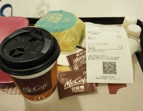 - 吃早餐,味道蛮好,适合我的口感。点麦当劳早餐,由于双十二倒是第一次使用支付宝并优惠了5元,太值得啦