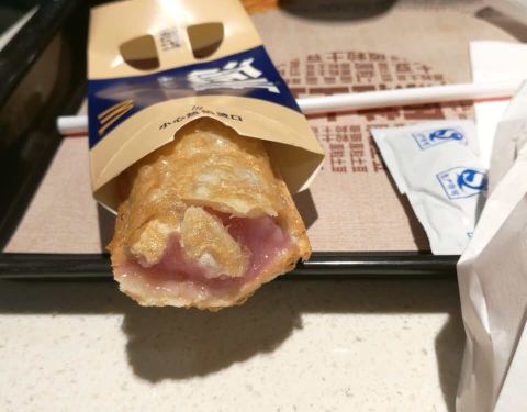 ...冷豆浆,服务员讲的是不卖热豆浆只卖冷豆浆,底下混沌,颜色澄粉色,喝完豆浆后觉得胃不舒服,特难受