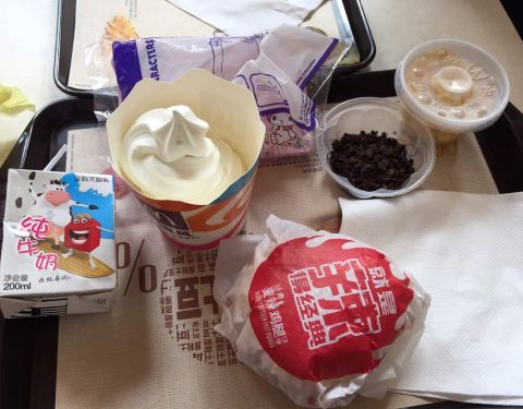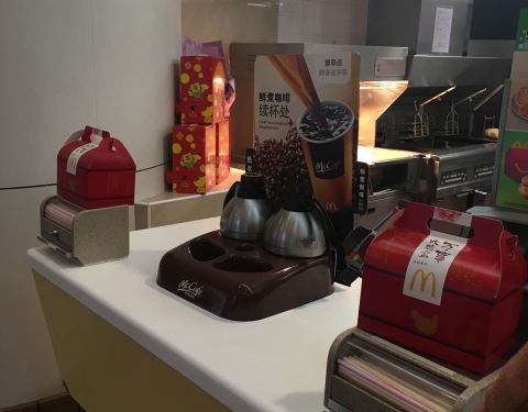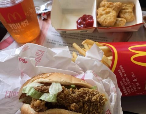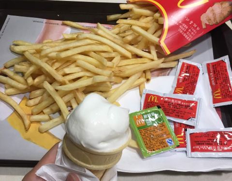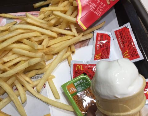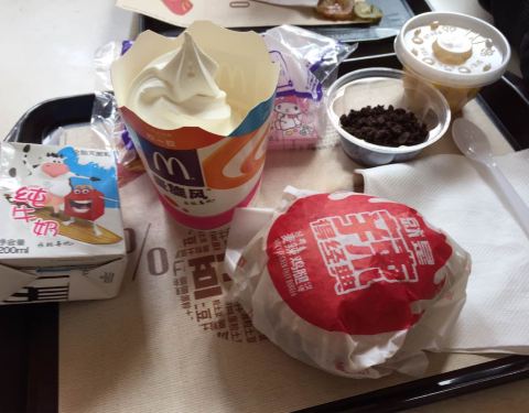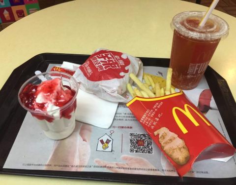 - 在麦当劳点了一个薯条,麦乐鸡,和两个派,味道不错,但是有一些热气的感觉,环境挺干净的,服务质量也不错