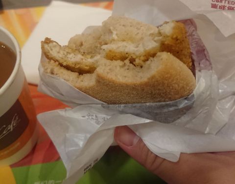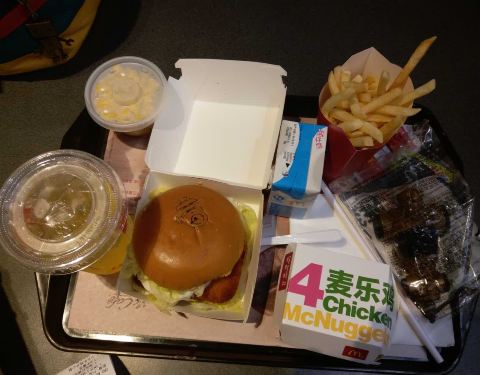 去朋友家送资料,路过金拱门,于是进去享用一份特价的吉士蛋麦满分,含饮品才6元,感觉还算不错。吉士蛋麦满分相对于大大块鸡扒麦满分更有营养,一片芝士,一只蛋,两片全麦面包,哈哈,营养均衡,吃完继续送资料...