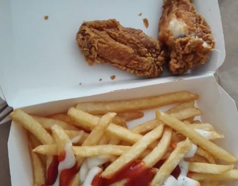 - 那么大鸡翅吃了3份,那么大特饮两份,外加一份薯条,我家两个捣蛋鬼太能吃了,问题是大的那个才吃了...
