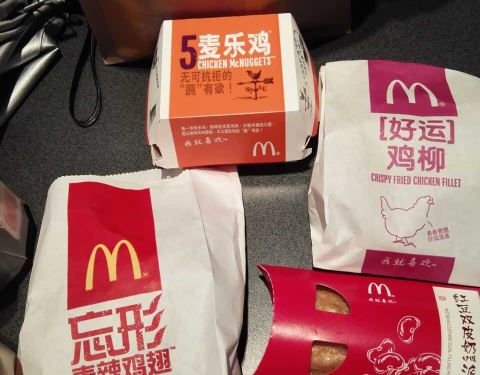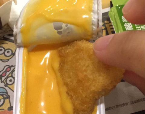 麦乐鸡的芝士酱好吃,就是之前的芝士薯条的酱,香蕉派不好吃,酸,软软的香蕉