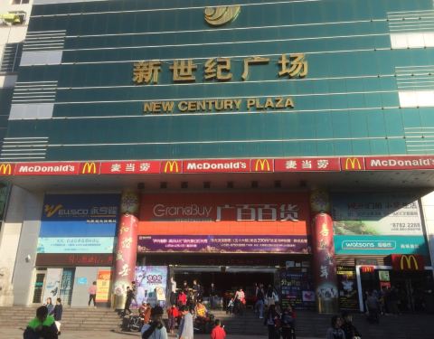 - 这家分店在市中心的新世纪广场内,不是得大,里面都挤满了客人