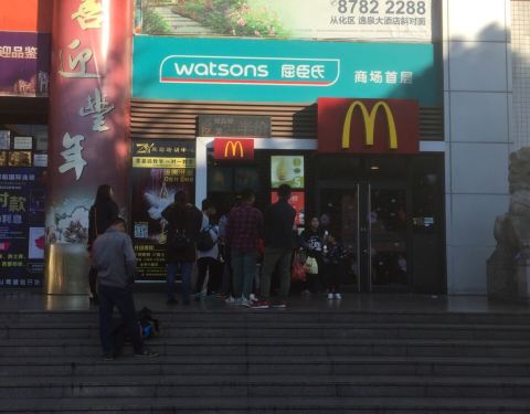 这家麦当劳那位于从化区老城区的中心位置,就在新世纪广场那边,具体一点的就是那边有个广百百货。但是没有做起来生意非常非常非常的差。