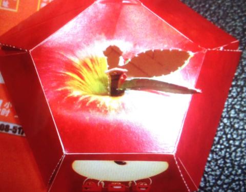 - 又吃到了最爱的开心乐园餐。满足新出的苹果也很不错。外包装的纸盒还可以扣下来做成这个立体的苹果很有趣哦