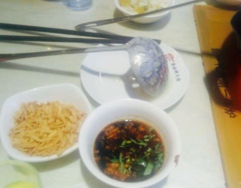 - 端上来的粥底是已经熬好的,十分好喝,很鲜,加一点馓子脆脆的更美味。蘸汁调的味道也很好。很养生