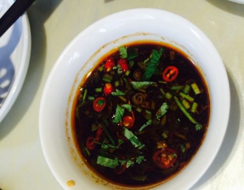 端上来的粥底是已经熬好的,十分好喝,很鲜,加一点馓子脆脆的更美味。蘸汁调的味道也很好。很养生