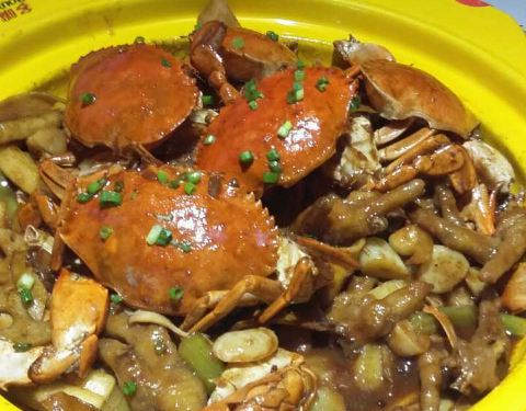 - 加钱加青笋很少几根。环境不错,服务不好连水也不到,要的全蟹的,但是蟹不很新鲜,鸡爪多量大价格可以