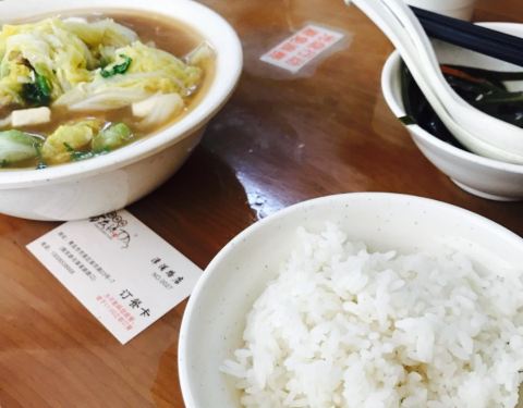 离南京路苏宁比较近,也是连锁店,店里生意不错。就近过来吃个工作餐。店不是很大,夏天也可以坐露天,工作日的中午,人不少。排骨米饭分大小份,不同部位价格不一样,喜欢吃肋排,骨头少,肉多。白米饭和小凉菜免费吃,不限量。排骨汤有点咸,配搭的菜比较丰富,有豆腐和粉丝,这都是标配,其它的主菜可以选,有大白菜,海带,土豆之类的,味道还是不错的。