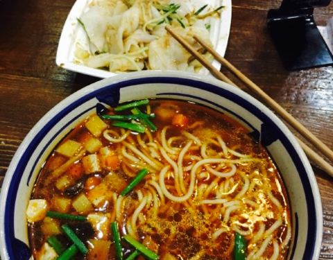 - 面条非常特别美味,因为好吃要了一个肉夹馍,最后还被忘记在了车里,给我朋友吃了,他说口味很正