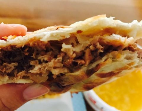 这个肉夹馍味道好美味,不愧是人口相传的陕十三,肉夹馍饼皮很大,陷多皮薄,吃一个搭配一碗凉皮量很...