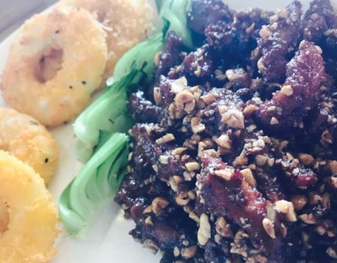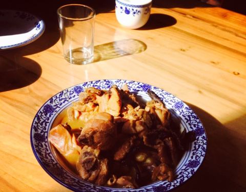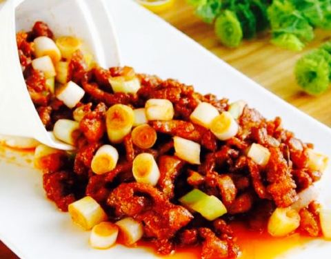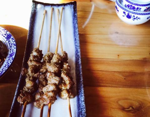 周末匆匆来邢台亲戚家,懒得在家做饭,亲戚就决定在这请客简单吃些。刚一到门口发现居然还是家清真餐厅,装修时尚有创意,我们人多订的据说是最大的单间在二楼,一楼目测都是散席,二楼都是单间,门店比预料的大不少。再说说菜品,没有亲自点菜,不清楚菜名所以只能根据菜样来评论了。牛肉粒,肉粒软嫩,味道奇特,新派融合风,油炸黑芝麻球,创意糯米球包裹黑芝麻酱,香而不腻,烤羊腿,烤制火候掌握恰到好处。其余菜品中规中矩,合适家庭,朋友聚餐。