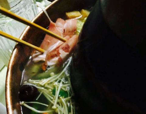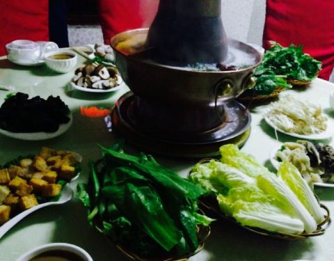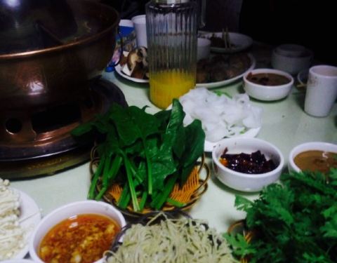 很久以前来的,记得那是春天很冷的某个晚上还下着细雨,和小伙伴约饭那就火锅吧下雨天和火锅挺配的,小伙伴想去某个四川火锅我呢想来铜锅记,最终决定谁掏钱谁说了算,看来我的决定还是正确的来了后来才知道是回民饭店(小伙伴是回民)。门面中式复古,到里面怎么觉得跟临建似的,去了才晓得那叫一个人多,大厅和院里的雅间都客满。老北京火锅都是炭火的锅子必须得配麻将的小料(也没有必须啦),他家续汤的壶有点意思,壶嘴要是再长点就好玩儿了。