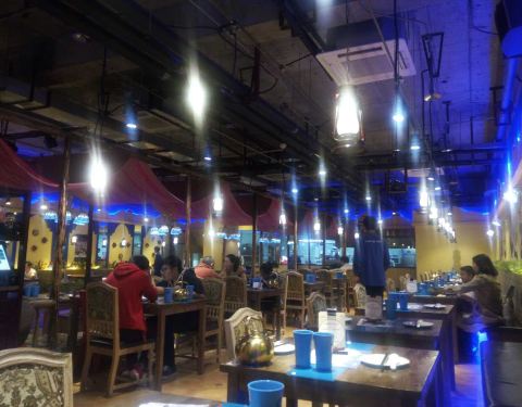 ...的手抓饭没有,换成合拼的,烤肉味道不错,就是有点油,有的筋咬不动,同学还推荐了蓝莓山药,下次试