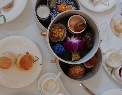 曼谷文华东方酒店内的传统英式下午茶餐厅,室内绿植环绕,环境优美。在这里可以点套餐,也可以单点,可选茶点种类丰富,且摆盘精致。