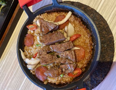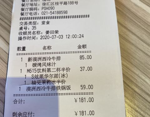 必胜客依然有很多顾客,也没有啥优惠活动,所以贵点看来是有道理的。两个人,一份牛排一份煲饭,两杯饮料,180,真不便宜。牛排倒是真不错,汁多肉嫩。