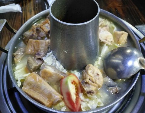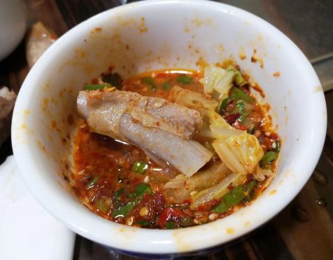 老板娘推荐的是腊排骨+土鸡双拼火锅,个人建议应当纯点腊排骨。因为他们家的腊排骨好吃,但在份量上比较少