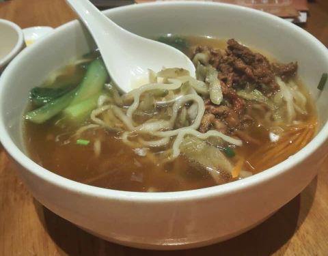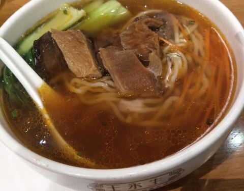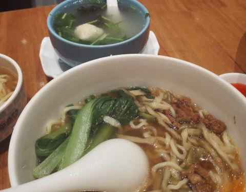 - 他家的红烧牛肉面做的很是地道,牛肉新鲜入味,汤头微微辣,夏天很是开胃。我家小宝必点两笼