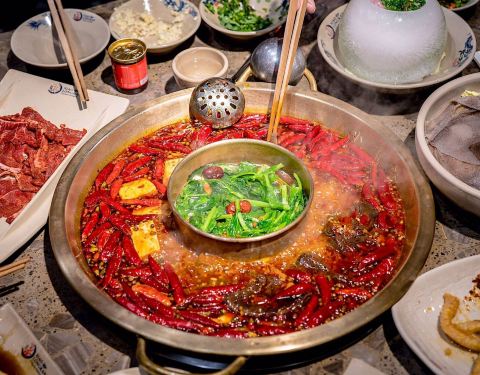 小龙坎老火锅(春熙店) 成都的火锅有多任性,就这样依然排队,也不管是周末还是非周末。 火锅牛排,一种用调制过的牛肉片,不会特别厚但是非常的嫩,一盘不过瘾又安排了一份。豌豆尖也是尖货,新加坡很少看到,即便是有也没有这么的鲜嫩。毛肚更是不在话下,小龙坎和小龙翻大江我更偏向小龙坎的锅底,这种冷冷的天气配上火锅,辣的相当过瘾。 地址:下东大街36号郁金香广场2F 时间:11:00-次日 3:00