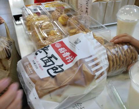 - 店员很热心的让试吃了一下刚出炉的面包,惊喜于稻香村居然还有面包。竟然还有咖啡。突然发现包装不一样