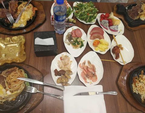 这家店好吃又实惠,而且小孩子还不收费,口味也不错,肉很嫩,小朋友也能吃,食物也新鲜,不会坏肚子,除了牛排,其它菜品也不错