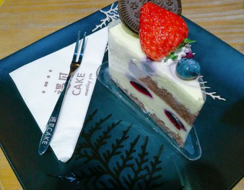 超赞的一家蛋糕店,一直很喜欢,终于有小的切块蛋糕了,价格基本均价在15元一块,学生党也能接受,可以带走,也可以在店里吃,店里环境也是没得说,选蛋糕,遇见cake觉得没错!!!从第一次抽奖抽中遇见cake,再也不想吃其他家蛋糕了,而且觉得好多其他家蛋糕有意模仿遇见,但经典的百里情人款,虽然样子包装可以模仿,但味道是唯一的!真心的评价!