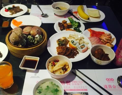 刚刚吃完回来,菜品不错,吃了烤鱿鱼,大虾,鲍鱼粥,烤肠,绿茶佛饼,小蛋糕,冰激凌……种类很多,每样东西尝一点点肚子就饱饱的了,服务员态度也很好