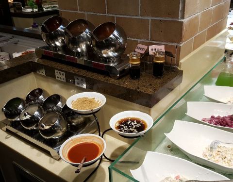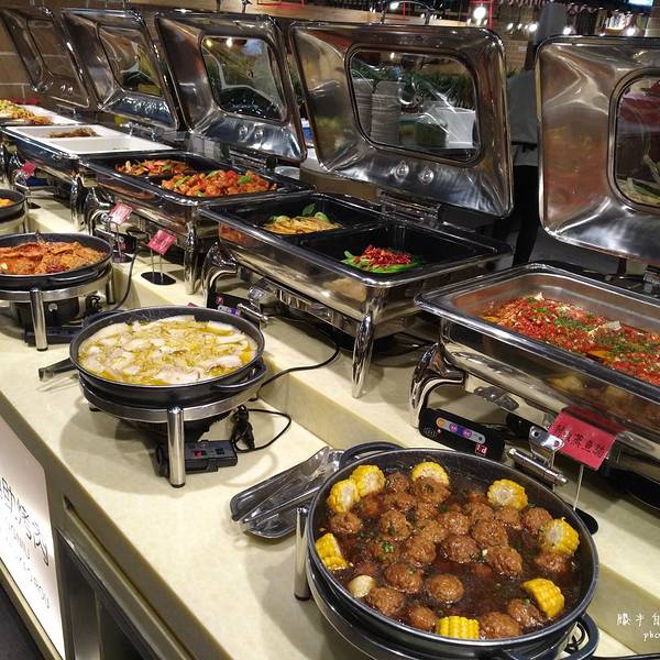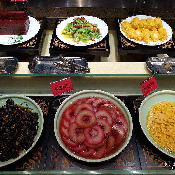 菜品摆放量不大,但是添加及时,基本不会有空的时候。希望能降低点甜度。其它的都很不错。希望增加