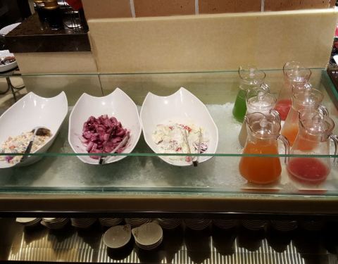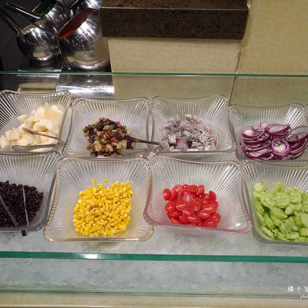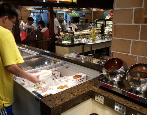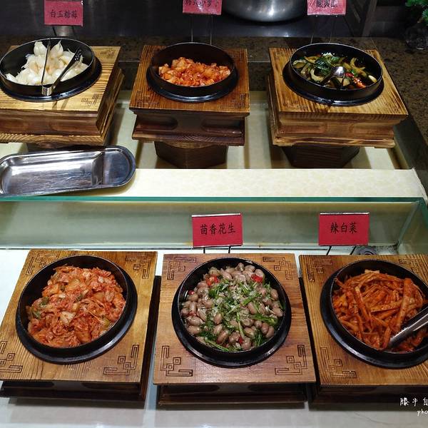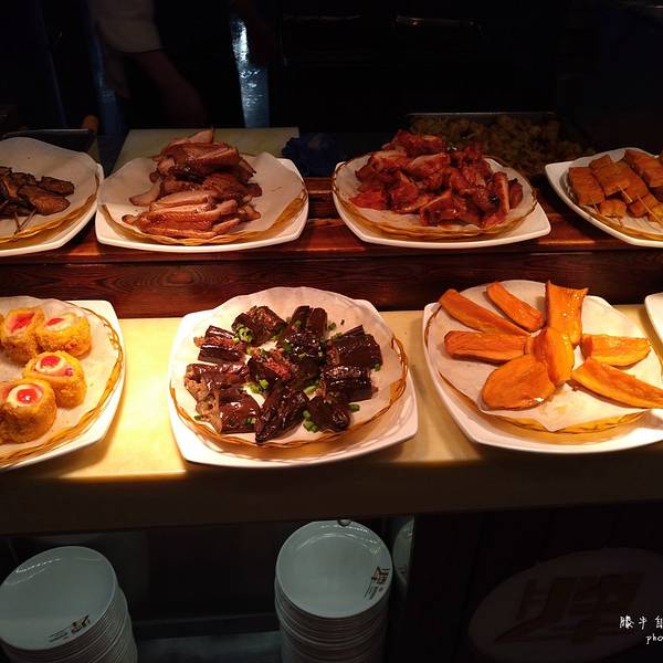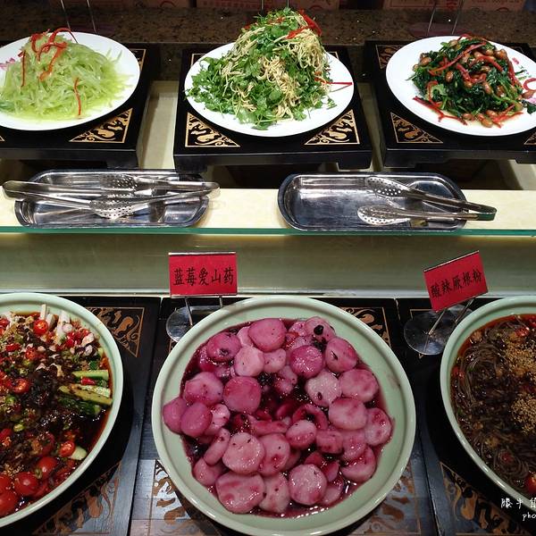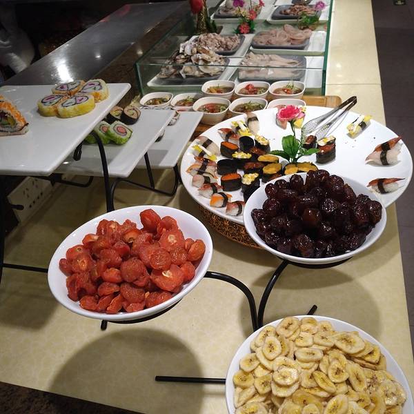 - 菜品摆放量不大,但是添加及时,基本不会有空的时候。希望能降低点甜度。其它的都很不错。希望增加