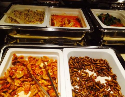 周末比较放松,看他家自助便宜,买一个随便吃吃吧。 [环境]餐厅位于铭泽广场三层,直梯上来出轿厢就是,好找。 装修还可以,有些文艺小资氛围呢,但就这个烟熏火燎的真的受不了,吃完出来一身味。 |蚕蛹^没有哪个菜让我印象特别深刻,唯独也就这个炸蚕蛹吃起来还有些意思。 |小海鲜^墨鱼、海肠之类的烤完了口感蛮不错的。 [服务]用餐前要交十元押金,用餐过程中,收盘、换纸还挺频繁的,虽然态度一般,但也不像差评里说的那么差,反正响应速度是能保证的。