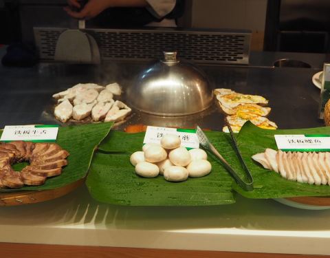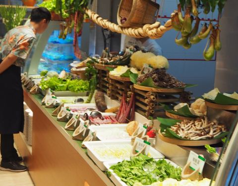 环境 与其他店铺风格一致。走异域民族风~面积宽敞,光线明亮,桌间距离大,在花团簇拥中就餐,气氛没的说。 服务 第六季的服务一直都不错。热情迎客,服务员彬彬有礼,培训得不错。中途加水撤盘都很及时,也会有人在旁边告知一些食材的特殊吃法,挺贴心的。如果想出去抽烟,服务员还会再给一张卡,方便出入。 菜品 以小涮锅为主,清汤和辣汤自选。辣汤也不太辣,个人更爱清汤,能吃出食材的新鲜味儿,但其实也就是玉米葱枸杞红枣姜做汤底,干干静静。 1️⃣小料区 吃牛羊肉就选麻酱,吃海鲜还是吃沙茶或者专门酱汁。配料挺全的,随自己心意。他俩辣椒油挺香的,麻酱太水了…… 2️⃣饮料区 啤酒汽车酸奶是放在冰柜里的。种类挺多的。热饮里强烈推荐花生牛奶和五谷。冬天喝特别暖胃~ 3️⃣蒸点区 南方早茶也能在餐厅吃到。虾饺,叉烧包,蘑菇包,小笼包。种类多,但味道着实一般。南瓜浓汤还是不错的,口感醇厚香甜,银耳汤也还可以,家人喜欢。 不知为啥蒸好的大闸蟹放在这个区域了,不少人排队拿,看着挺新鲜的。 烧烤区 烤大虾和烤羊肉串。厨师功底不太够,火候掌握的不太好,而且出品不稳定,有的串烤的不错,有的串就肉老了发死。大虾比羊肉好一些,可能是新鲜的原因吧 铁板区 鹅肝、牛舌、鳕鱼、蘑菇、野鸡蛋。煎鸡蛋强推!半流心,甜甜的蛋液,没有土腥味,甘甜回香。其他的就很一般了。纯靠食材味撑着。野鸡蛋可以单独拿! 熟食小菜区 这片区域最冷清,有各种油炸小吃糕点,开胃小凉菜,很多南方特色小菜,挺新鲜的,都是辣口。松鼠桂鱼意外不错,比不上正规餐厅里的,但口感还不错~至于鸭腿酱牛肉就不要拿了…… 鲜活区 吃了的种类有鲍鱼泥鳅鳝鱼墨斗生蚝扇贝黄辣丁石斑鱼皮皮虾巴沙鱼黄花鱼籽江团鱼牛蛙和鲟鱼。牛蛙、鲍鱼、扇贝、生蚝和黄花鱼籽排前五。口感最好,爽口滑嫩,鲜美不腥。其实整体都不错,常见不常见的,吃起来都是新鲜的,只是口感的差异。 涮菜区 这个区域都是在冷藏柜里,鸭肠猪皮毛肚牛脊髓都是涮锅神器,都挺爽口的。鲜木耳口感最好,爽脆~低脂魔芋涮涮清清肠胃。 蔬菜菌类区 这个区域都是新鲜的蔬菜和菌类。厨师推荐了小酥肉,酥脆香嫩,推荐!龙爪菇的口感有点奇怪。最喜欢吃鸡腿菇和竹荪。娃娃菜甘甜清爽,紫山药和紫土豆特别绵密涮起来很甜~ 鲜肉区 是空运的耗牛眼肉和藏羊腿肉,噱头挺足,但因冷藏太久,切的又过厚,所以,嚼不太动……