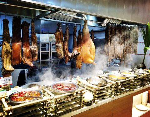 北太平庄路路西豪威酒店边上的一家自助餐厅。每人一个小火锅,食材自取。有牛肉片羊肉片,数十种鱼虾蟹贝,以及多种山野特色菜。另有现场制作的熟食,例如羊肉串,多种主食。