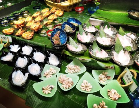 用餐不限时,是大胃王首选的用餐地之一。吃的东西真的很多,爱吃海鲜的适合了,鲍鱼、基围虾、扇贝、象牙蚌,都是新鲜现捞的。服务员服务特别到位,胆小的女孩可以拜托服务员帮忙。