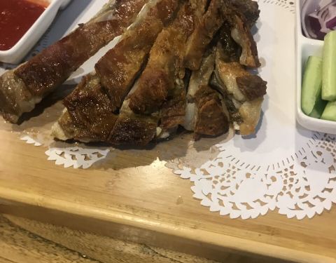 想去蒙古包,可惜人太少了,只能散桌啦。不过里面的表演真的是挺闹心,味道不错。肉确实挺嫩,一点不膻。羊排肥瘦相机,羊杂汤大家都说超好,不过个人觉得还一般吧,香香辣辣无功无过。有一种烤的酸奶饼,里面是酸奶微微甜,还有一点酸,朋友一口下去大呼太好吃了,虽然我也没吃出来