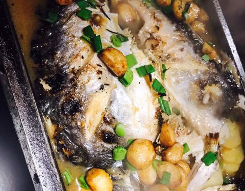 ...,看见探鱼店不用排队就进去了,不过这次烤鱼感觉不太好,好像有点烤糊了味道有点苦,下次不选这家了