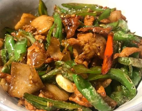 味道还是可以,就是农家小炒肉辣椒太老了,辣椒炒过油太久,辣椒吃起来就太硬,应该选择嫩一点辣椒。