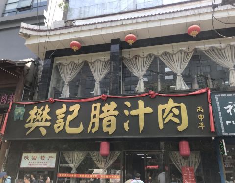 位于西安竹笆市的樊记腊汁肉夹馍,是一家百年老字号店,店铺不大以肉夹馍出名,肉夹馍分为普通、瘦肉、精品三种,肉鲜多汁浓郁喷香,黄贵稠酒、米皮、鸡汤馄饨也是店内特色,还有抽真空的腊汁肉方便游客带回。