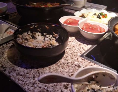 味道还可以,蟹子味道还行,但不是活的,稍辣,带孩子吃不适合,饮料很有特色,推荐南瓜饼 火腿紫菜拌饭很赞