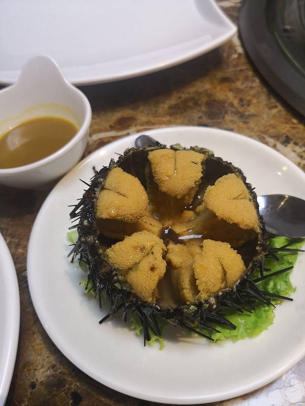攻略推荐的这家,蒸海鲜很赞!鲜美!这里没有炒菜!生吃海胆!大连特色!很鲜美!值得品尝!蛏子王,个头大。我自己吃了这些,很饱了。家人都不吃海鲜,就是陪我来的。他们吃的蒸菜蒸饺。